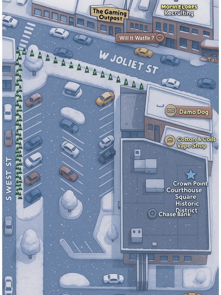 View the official map for the Christmas at Bulldog Park tree display. Each sponsor’s tree is marked with a unique number that matches the legend below. Use the legend to see which organizations have purchased a tree and where their tree is located on the map. This page helps sponsors and visitors easily find and enjoy every decorated tree throughout the event.